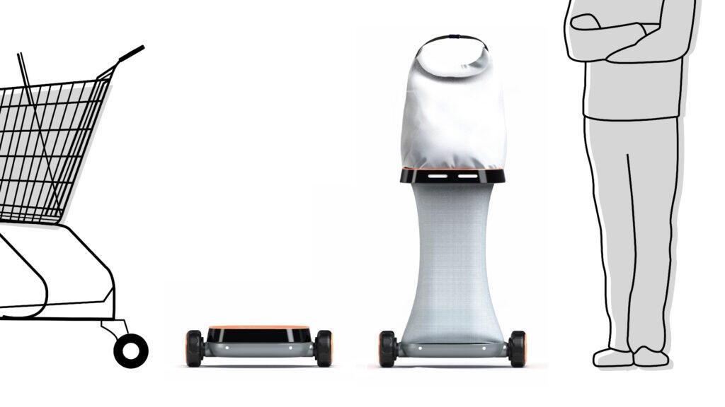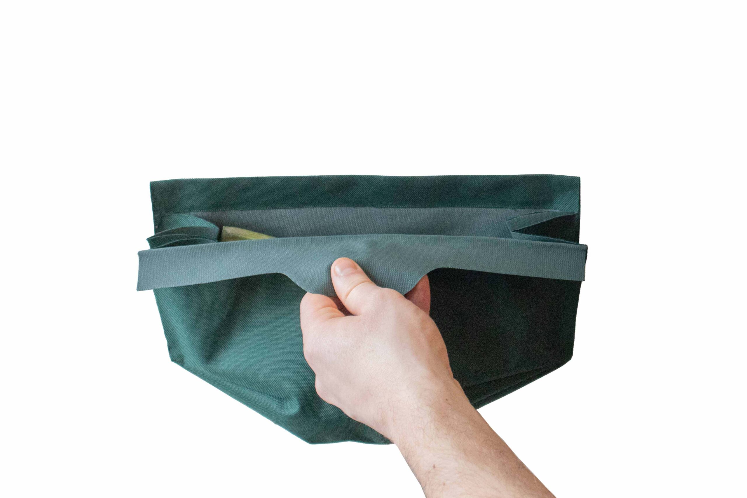 Auf der einen Seite können Nutzer*innen die Tasche halten und auf der anderen Seite die Plattform am Tragegriff.