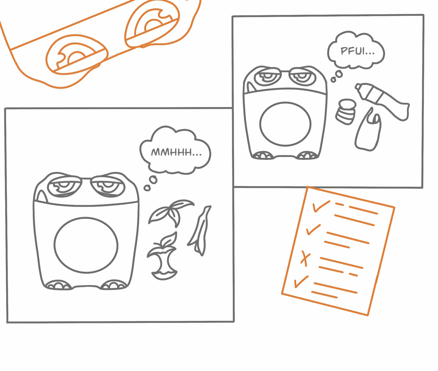 Das Programm beginnt mit Lernvideos und Arbeitsblättern, in denen die Kinder spielerisch verstehen, welche Abfälle in den Biomüll gehören und welche nicht. Dabei helfen die Mümos die den Kindern zeigen was sie gerne fressen. Später werden diese Monster „lebendig“: Sie entpuppen sich als Sammelbehälter, welche die Kinder mit nach Hause nehmen. Dort füttern sie ihr Mümo mit Biomüll und bringen es immer wieder mit in die Schule.