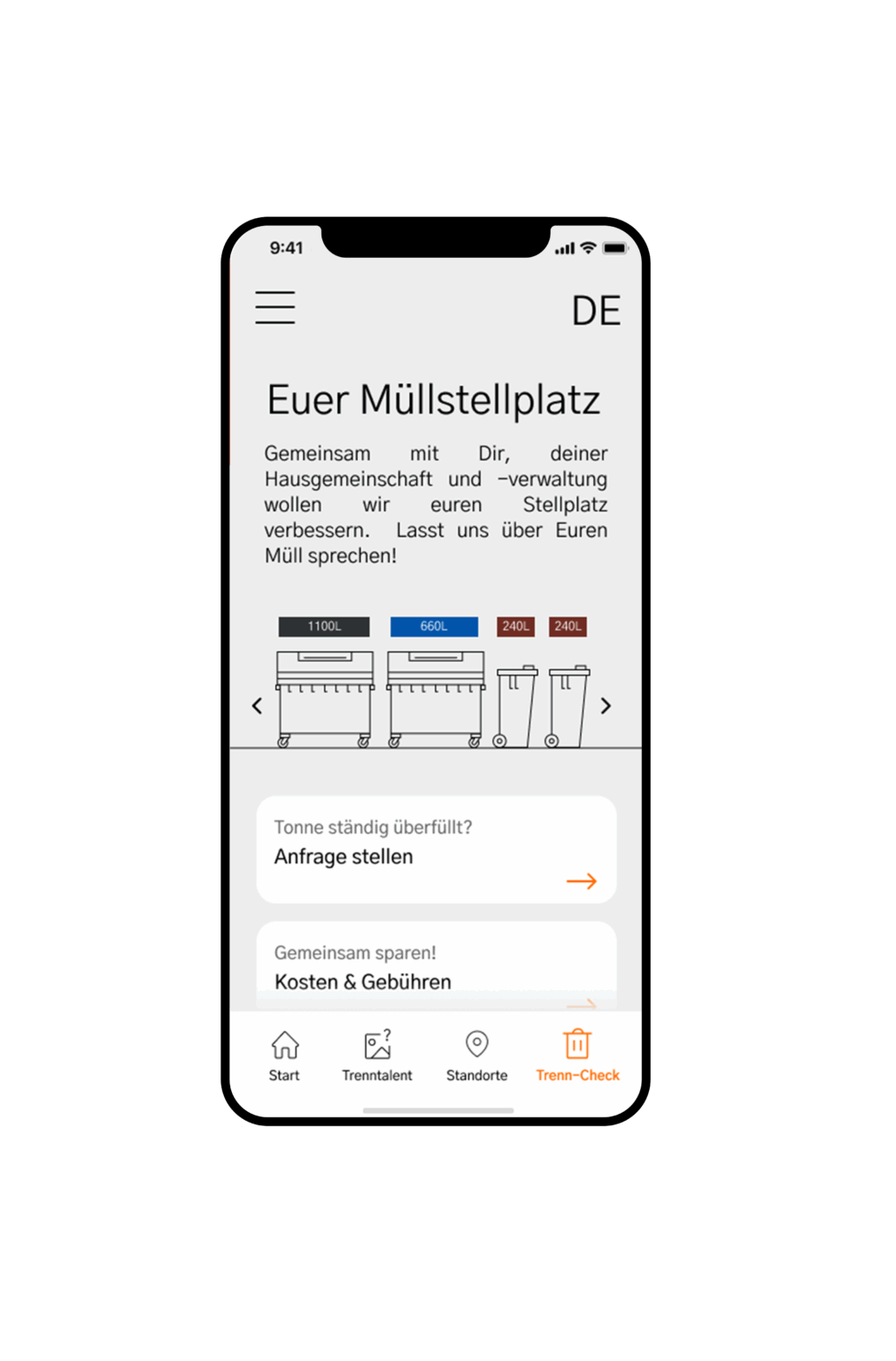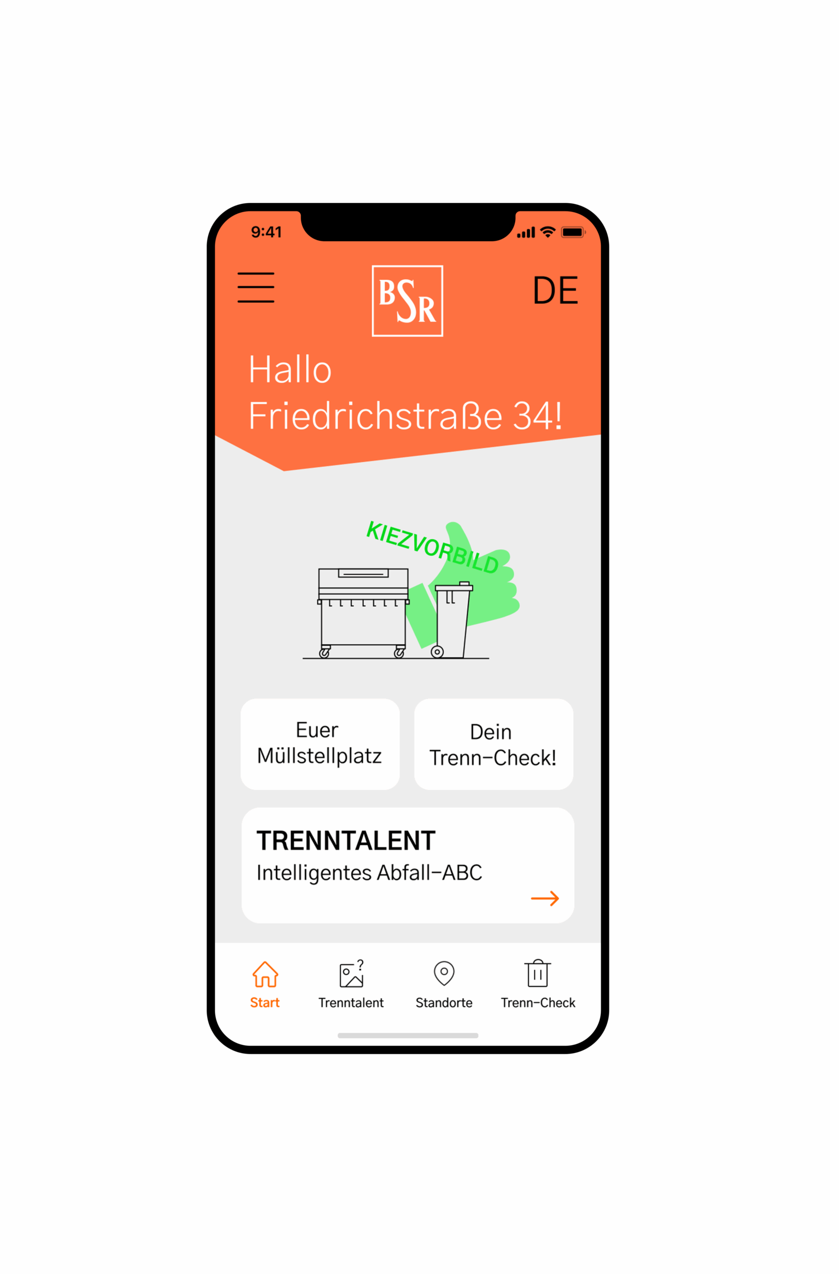 Durch BSR-Buddy soll gezielt mehr Nutzer:innen für einen verantwortlichen Umgang mit ihrem Müll interessieren. Im Zentrum steht die BSR-App. Diese kann fortan nicht mehr umgangen werden, denn sie wird zum Schlüssel für die ab jetzt verschlossenen Tonnen. Die Nutzer:innen halten ihr Smartphone an den jeweiligen Tonnendeckel. Auf dem Display erscheint ein Feedback, die Bügelhalterung der Tonne entriegelt sich. Die Tonne öffnet automatisch und kontaktlos.