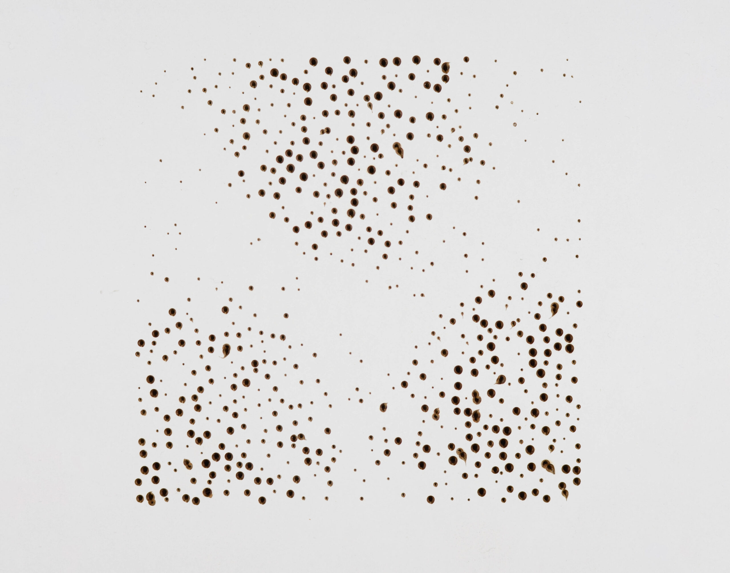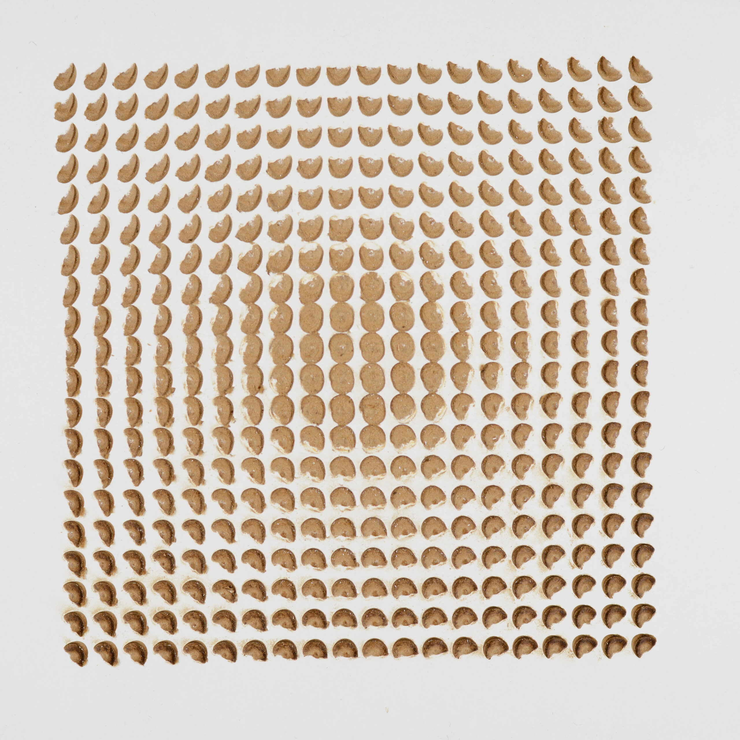 In der ersten Aufgabe näherten sich die Studierenden durch zweidimensionale Fräsübungen der Roboter-Thematik. Die Studierenden untersuchten verschiedene Ansätze zur Implementierung von Helligkeitsgradienten in Form einer Punktverteilung. In der Übung wurden beschichtete MDF-Platten mit den Maßen 20x20cm und ein 3,2mm Bohrer verwendet, um verschiedene Helligkeitsstufen zu erzeugen. Neben der Variation der Bohrungsdichte wurde in der Übung auch die Verwendung unterschiedlicher Werkzeugspitzen untersucht, um verschiedene materialbedingte Effekte zu erzielen. Die Geometrie des Werkzeugs, z. B. ein konischer Fräser oder eine Trennscheibe, konnte verwendet werden, um Löcher oder Linien unterschiedlicher Größe und Länge zu erzeugen. Dadurch konnte eine größere Bandbreite an Helligkeitsstufen erzeugt werden, was zu komplexeren und dynamischeren Mustern führte.