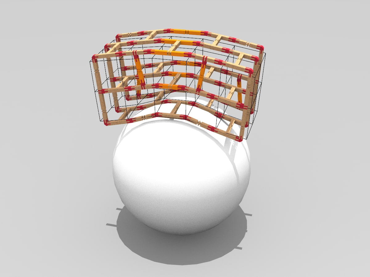 Simulation eines sich an Formen anpassende Holzkonstruktion