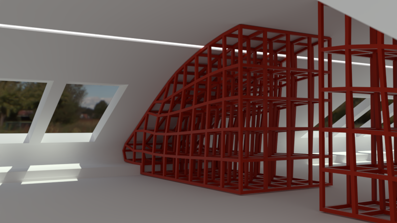 Simulation eines sich an Formen anpassende Holzkonstruktion im Raum
