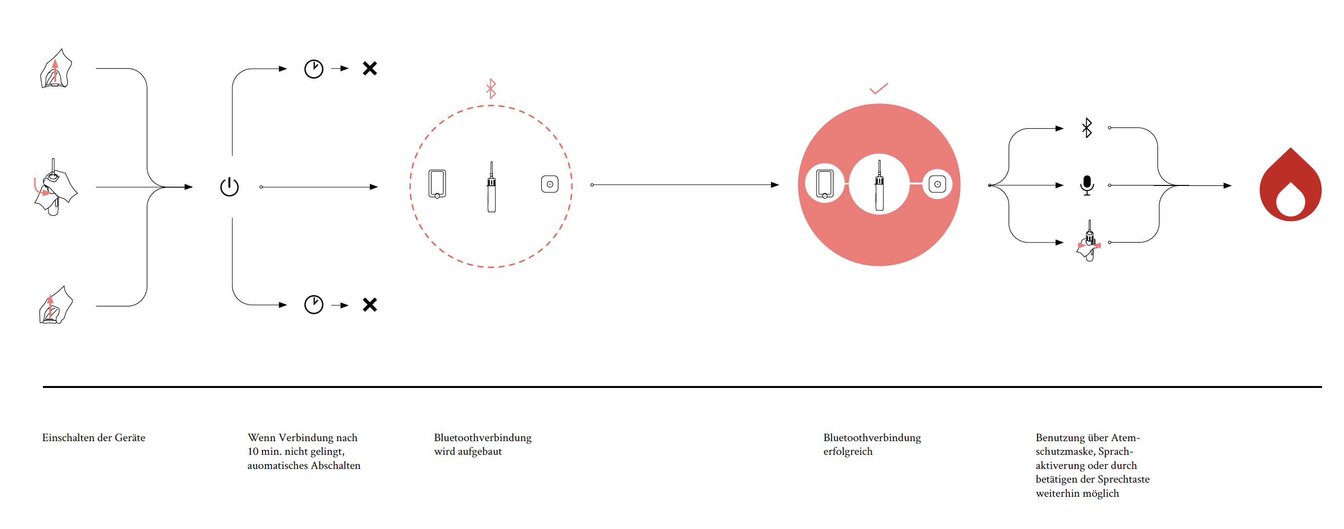 Während eines Brandes sind First Responder durch ihre persönliche Schutzkleidung fast gänzlich von ihrer Umwelt isoliert. Sukzessive überwachen digitale Endgeräte Position, Restatemluft und Raumtemperatur, konkurrieren aber mit ihren Rückmeldungen um die ohnehin stark eingeschränkten Wahrnehmungskanäle der Nutzer. Funkfeuer ist ein additives Kommunikationssystem, welches die Feedbackrelevanz der Endgeräte nach Dringlichkeit sortiert und zweitrangige Informationen auf die periphere Wahrnehmung auslagert. Die Einsatzkräfte erhalten unscharfe Mitteilungen über situative Veränderungen ohne von ihren Primäraufgaben abgelenkt zu werden.