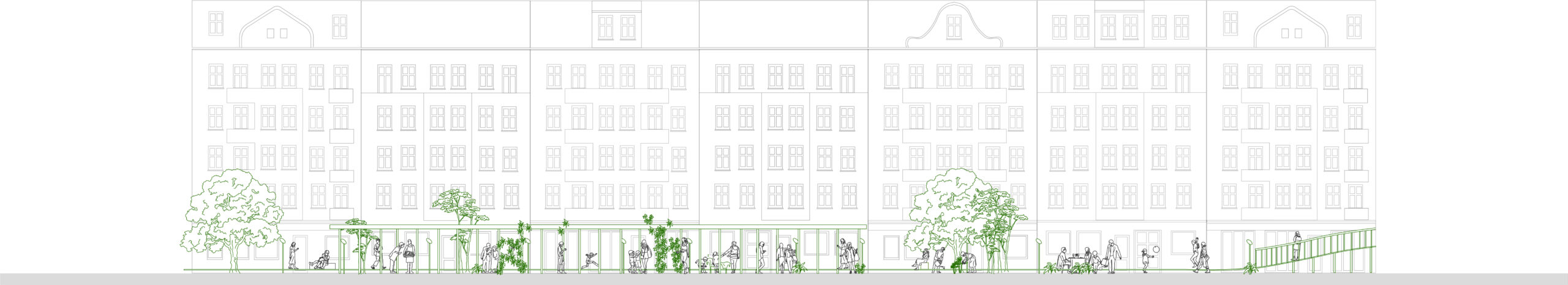 UrbanWalk ist ein Maßnahmen-Katalog für neue, behagliche Gehweg-Zonen im bestehenden Stadtraum. Er macht Fortbewegen gesünder und sozialer und unterstützt die Akzeptanz für den fahrzeugfreien Kiez.