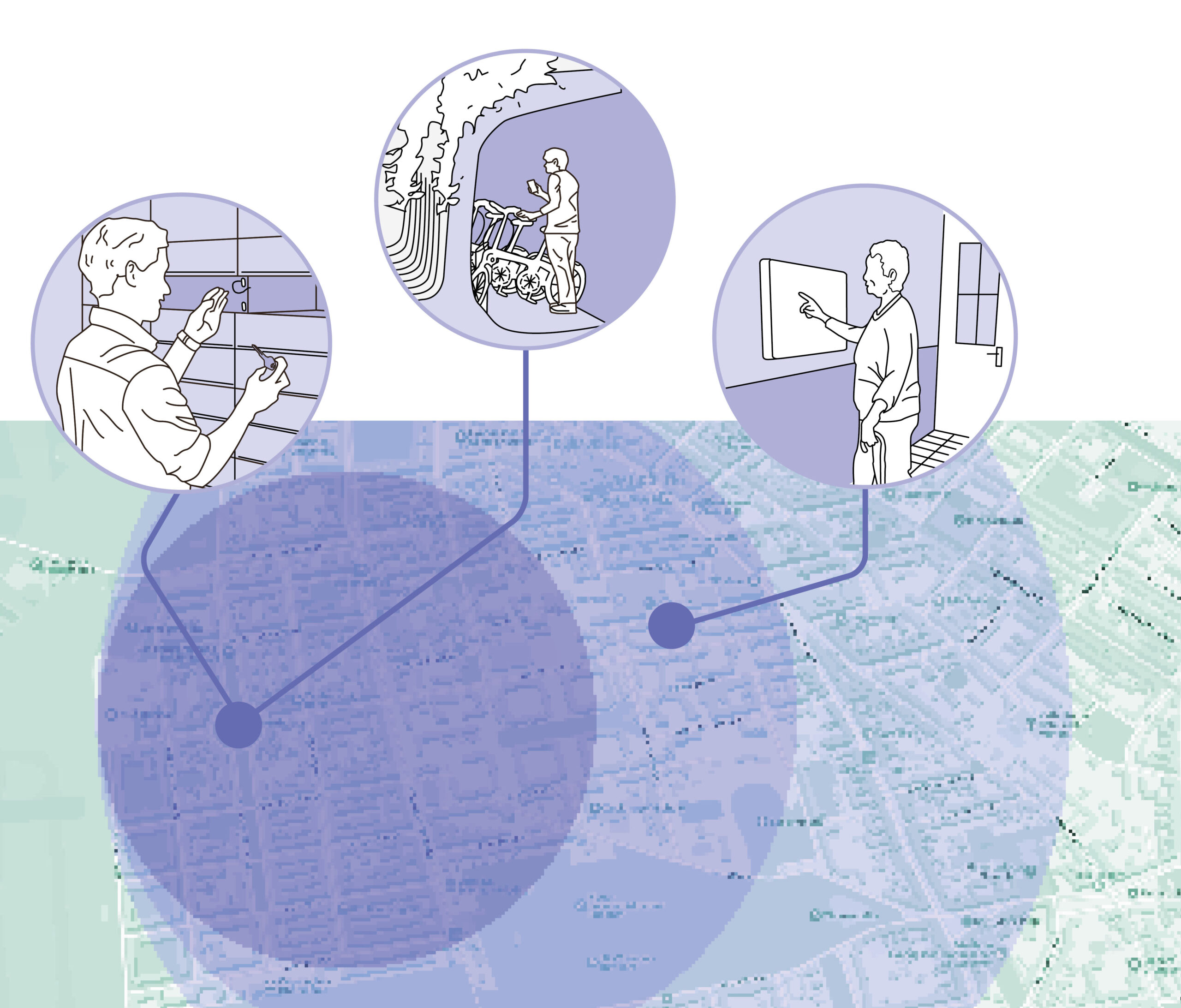 Als sozialer und inklusiver Service stellt The Hood Community Boards in den Kiez. So können auch Nachbar*innen mit Einschränkungen oder ohne Smartphone an der Sharing-Community teilhaben. Obendrein haben Sammelstellen für Fahrräder und Roller – sogenannte Mobilitätsstationen – das Potenzial zum Raum für Begegnungen.