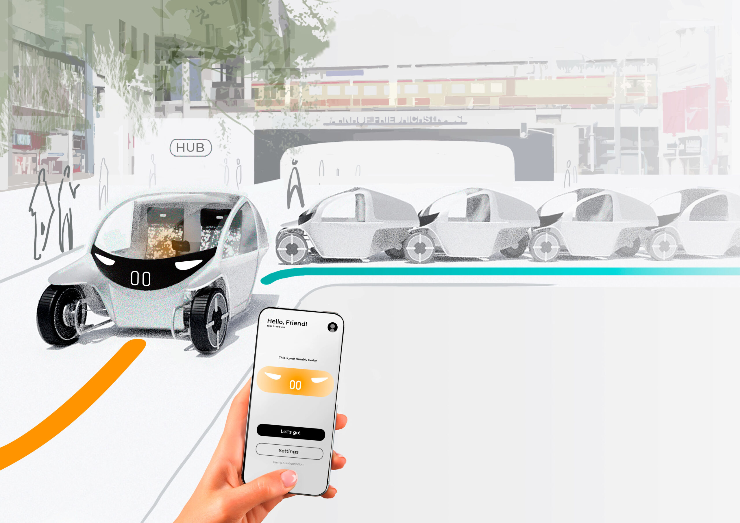 Der Humbly-Sharing-Prozess wird niederschwellig, preiswert und verkehrsmittelübergreifend via App organisiert. Das Smartphone übernimmt während der Fahrt auch Infotainment-Funktionen.