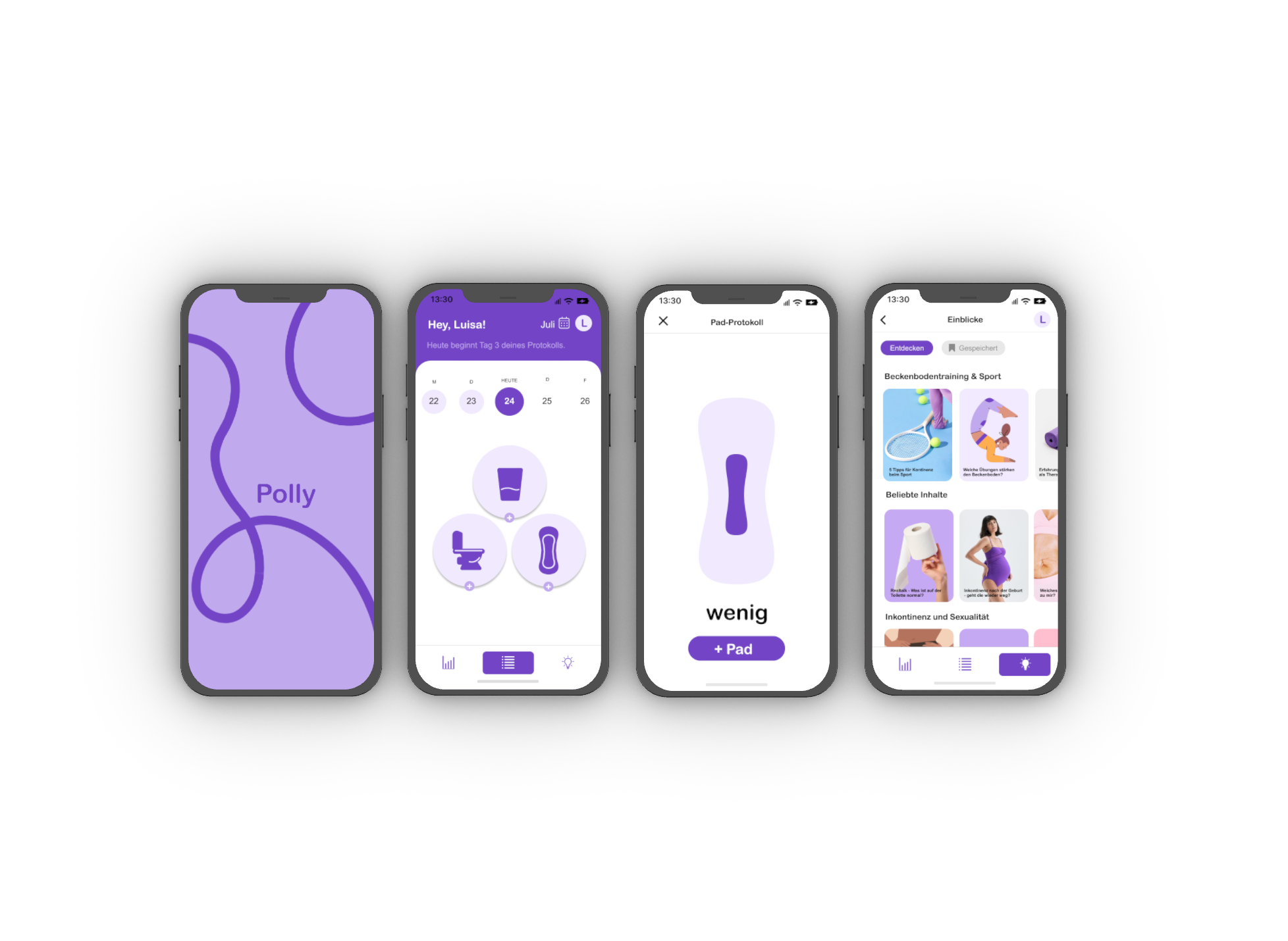Polly ist ein Service, bei dem Frauen per App ihre Harninkontinenz tracken und diagnostizieren können. Harninkontinenz ist die häufigste chronische Krankheit unter Frauen in Deutschland, rund ein Viertel sind betroffen.