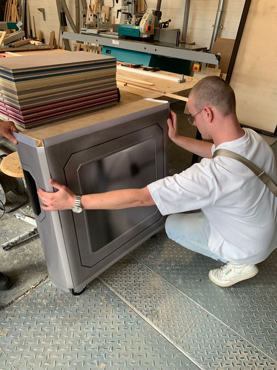 Die mobile Werkstatt besteht aus drei flexibel kombinierbaren Modulen und passt sich unterschiedlichen Raumsituationen an.