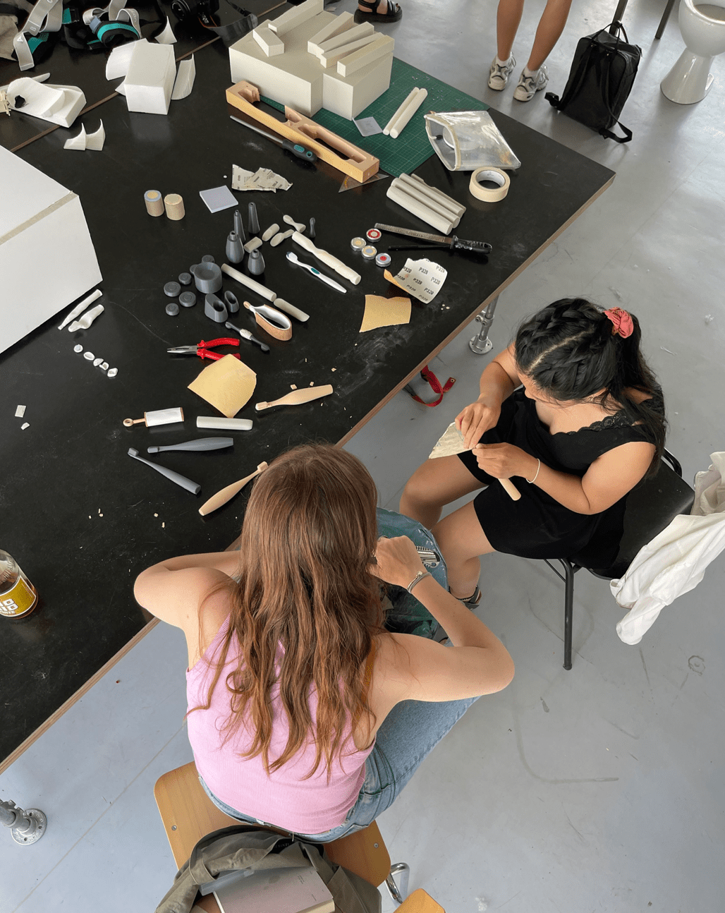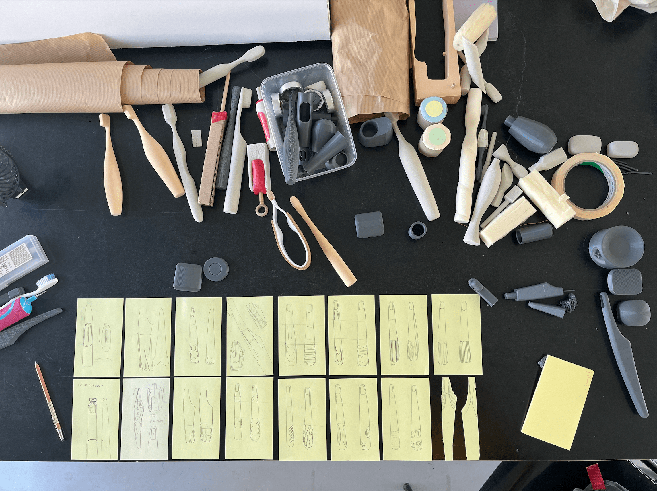 Die Erarbeitung der Konzepte und Gestaltungsvarianten erfolgte mit unterschiedlichen analogen und digitalen Mock-ups und Prototypisierungen. Ergebnis war ein detaillierter Entwurf mit einem finalen Designmodell. Im Rahmen von „hands on – care“ gab es außerdem Einführungsveranstaltungen in unterschiedliche Werkstätten in Weißensee – die Holzwerkstatt (Holzbearbeitung und Schaum), die Werkstatt für Metall- und Kunststoff (inklusive Tiefziehen und Vakuumguss) sowie das Solid Rapid Prototyping Lab.