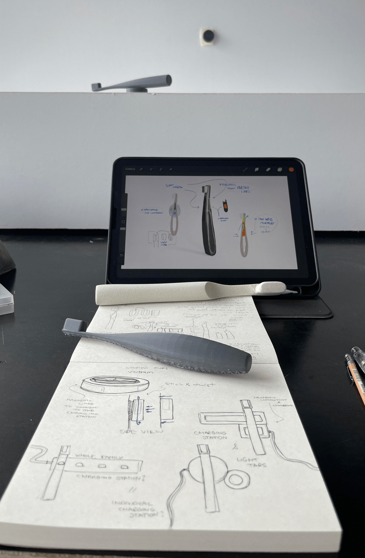 Nach (Field-) Research und einem Einstiegs-Workshop zur schnellen Konkretisierung des eigenen Themas lag der Fokus auf der Gestaltung eines physischen Produkts. Die Einbindung in das persönliche Umfeld veränderte auch die Anforderungen an die Gestaltung: Wie können Produkte sowohl in der Handhabung als auch in der Wahrnehmung alltagstauglich werden und Stigmatisierung vermeiden? Kann sichergestellt werden, dass eine fehlerfreie Bedienung sowie die Erfordernisse an Sicherheit und Hygiene auch durch die Patient*innen selbst oder pflegende Angehörige erfüllt werden können?