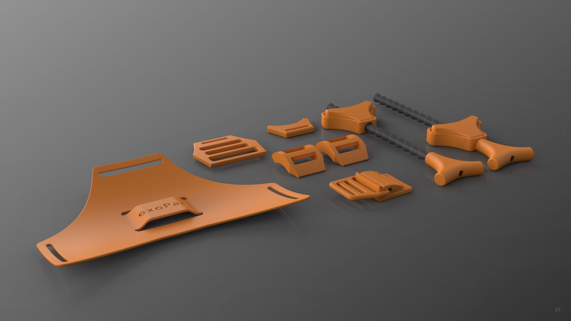exoPar stützt, wo und wann es gebraucht wird, und sorgt gleichzeitig für Bewegungsfreiheit. Das System ist modular aufgebaut, damit es an verschiedene Körpergrößen und -formen angepasst werden kann.