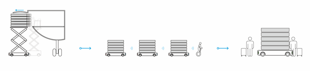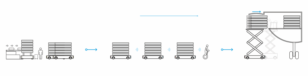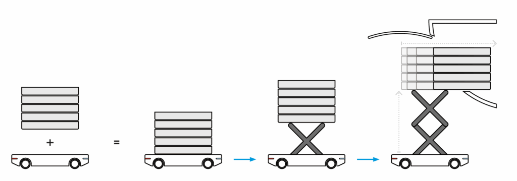 Durch die neue Dimensionierung des Fahrzeugs und des Containers verringert sich die gesamte Länge der Fahrzeugreihe. Jedes Fahrzeug kann im Vorfeldverkehr flexibel re-agieren. Das Fahrzeug weiß, wo es fahren soll und wo sich die nächste Fahrt befindet. Jederzeit ist bekannt, wo es sich befindet und welchen Container es transportiert. Um die Übergabestellen des Containers zu reduzieren und dadurch Zeit und Arbeitsef-fektivität zu gewinnen, spielt der intelligente Fahrzeug nicht nur als Gepäckwagen eine Rolle, sondern auch als Cargoloader.