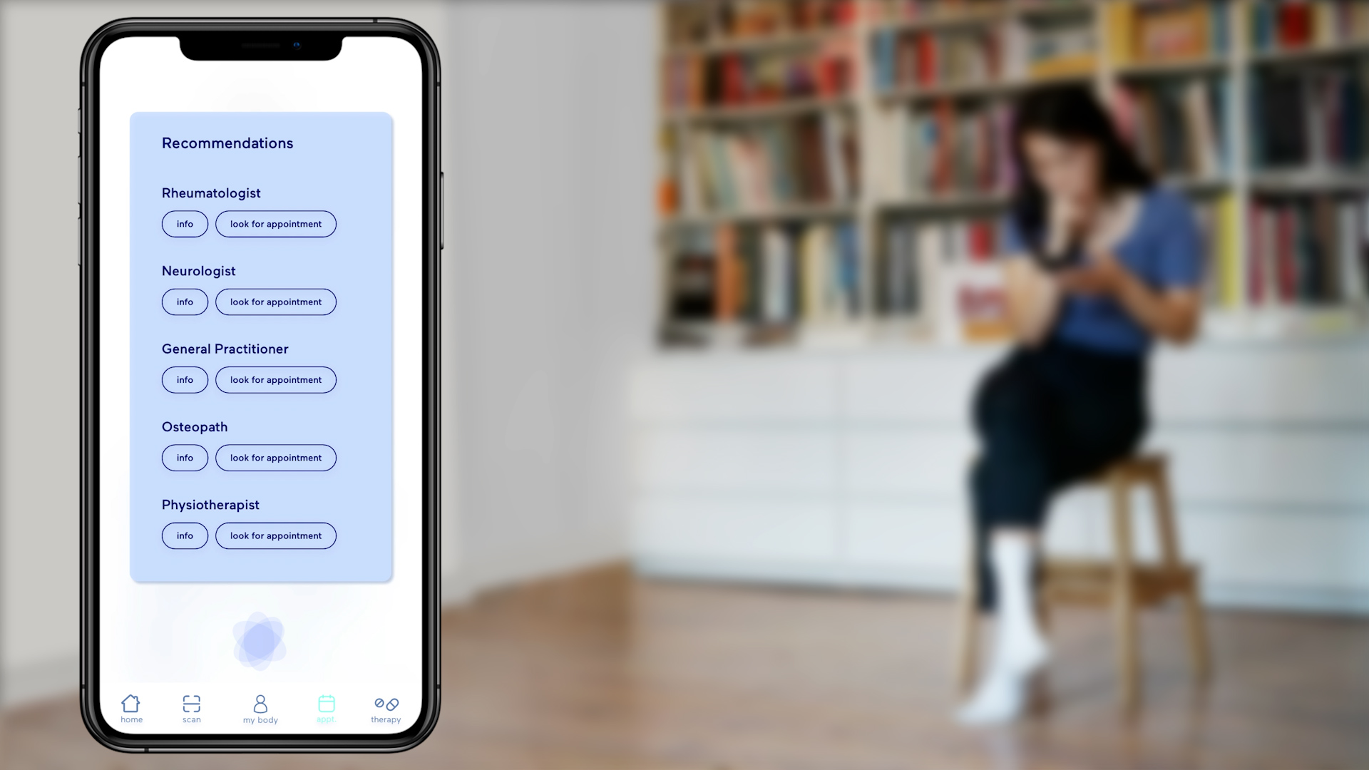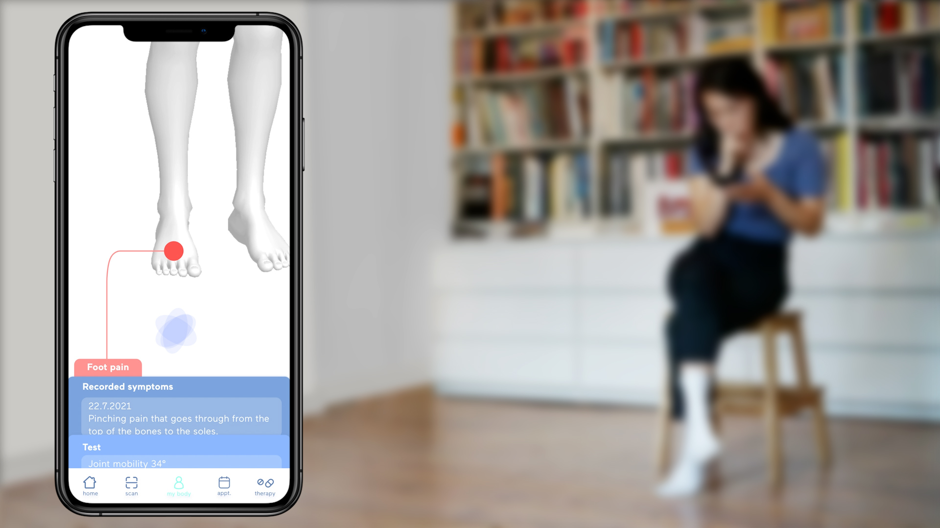 Die zweite Komponente ist die App selbst. Sie begleitet die Nutzerin durch den Diagnoseteil zu Hause und steigert so die Effizienz der Vorsorgeuntersuchung, indem sie relevante Informationen zur Schwangerschaft (z. B. Schwangerschaftswoche oder -typ) bereitstellt. Diese Informationen passen sich kontinuierlich auf Basis der Testergebnisse an und werden an die Gynäkologin, den Gynäkologen oder die Hebamme übermittelt. Die App organisiert Vorsorgetermine und fragt vorab Beschwerden ab. So kann die Schwangere in Ruhe über mögliche Beschwerden nachdenken und diese in der App festhalten. Die behandelnde Fachperson kann die Beschwerden über die geteilte App einsehen und auf Grundlage der Ergebnisse und Angaben einen virtuellen oder physischen Termin ansetzen.