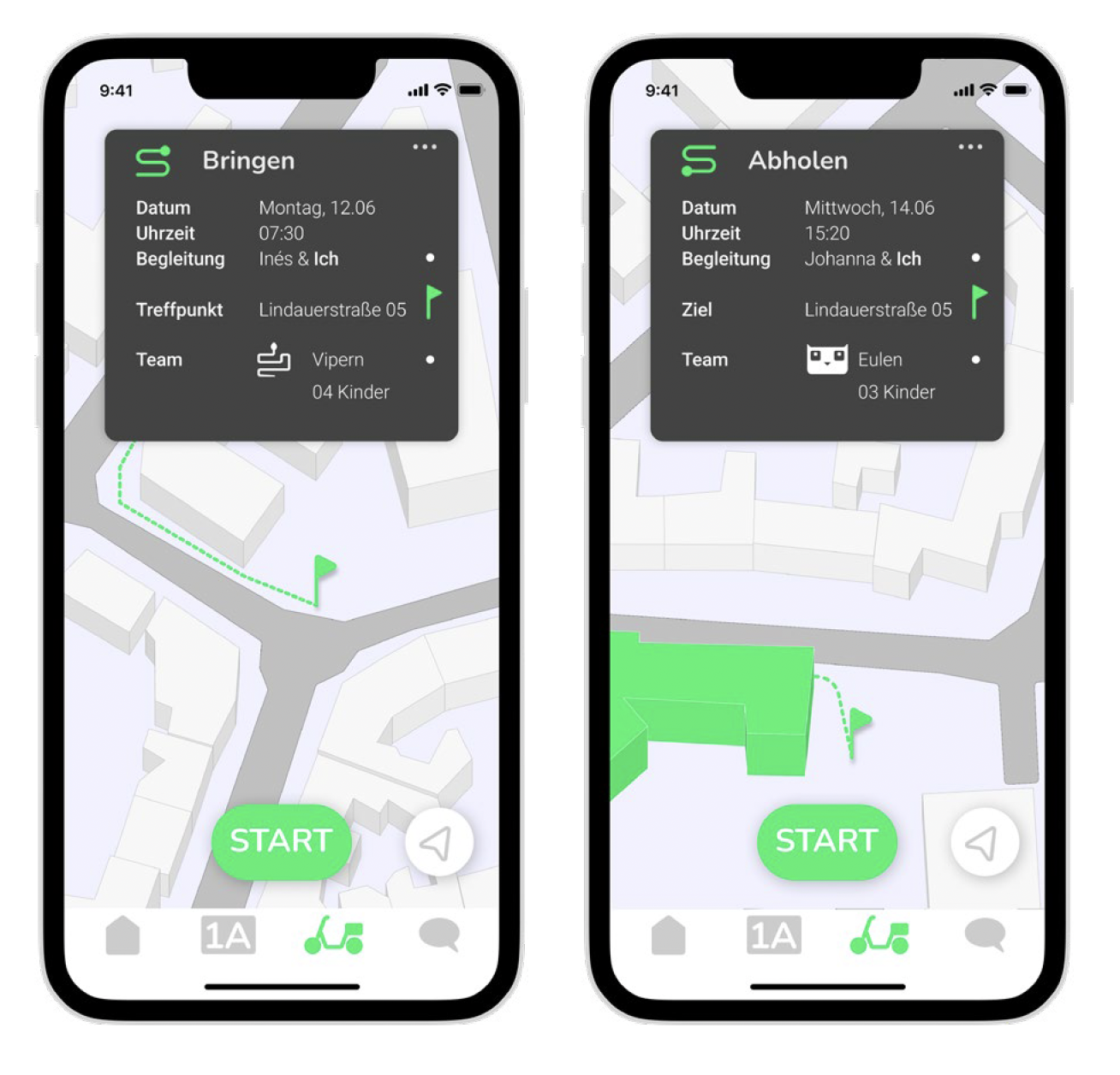 Die App soll die Kinder nicht überwachen, allein das Eintreffen in der Schule soll den Eltern – auf ihren Wunsch hin – angezeigt werden. Die App soll flexibel auf Veränderungen (beispielsweise Unterrichtsausfälle) reagieren und kurzfristig neue Optionen für die Gruppenbildung und die Begleitung anbieten. Den Zugang erhalten die Eltern mit der Einschulung der Kinder. Aus sozialen und pädagogischen Gründen erhalten alle Schülerinnen und Schüler mit Beginn der ersten Klasse einen baugleichen Roller.