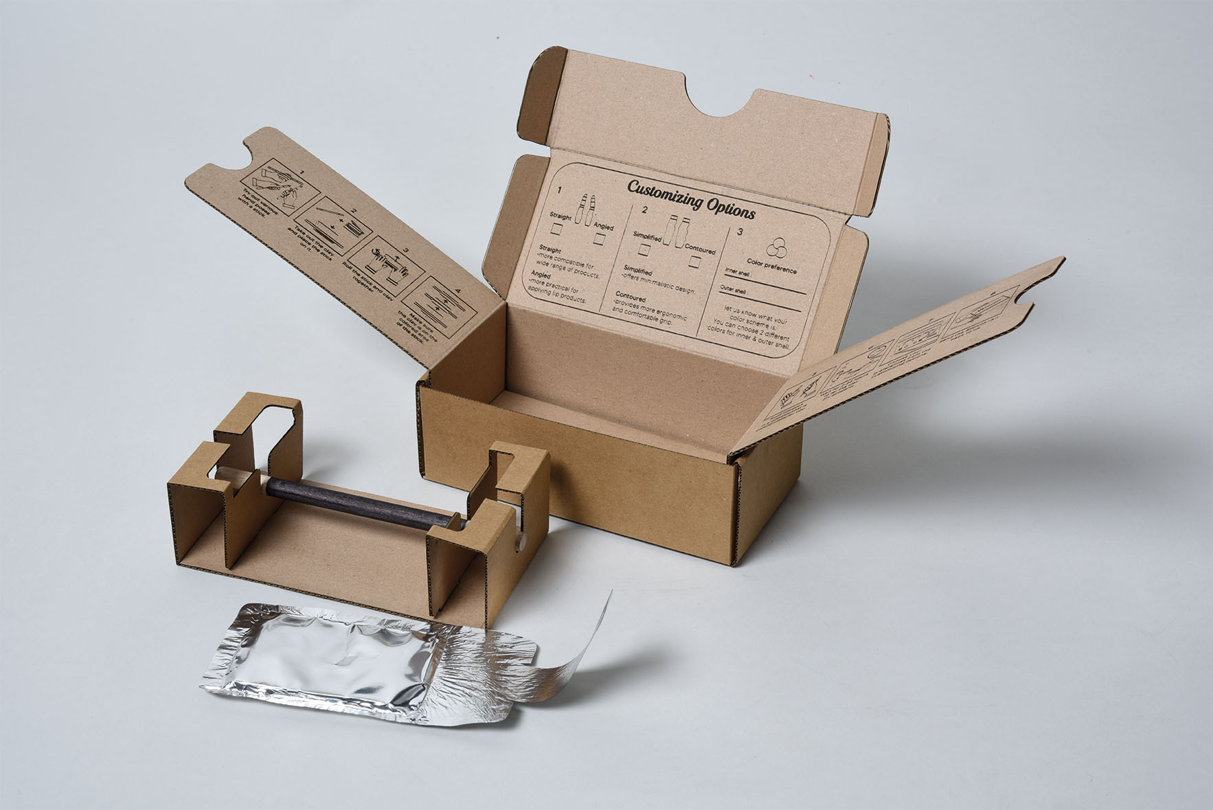 Es kann als Verlängerung für Schminkprodukte mit kurzem Griff verwendet werden und bietet einen Griff, der perfekt zur Hand des Benutzers passt. Diese Lösung ermöglicht es Personen mit eingeschränkter Feinmotorik, Make-up mit besserer Kontrolle und Präzision aufzutragen. Die aus vier Modulen bestehende Hauptkomponente des Handgriffs basiert auf der einzigartigen Handform des Benutzers. Dieses personalisierte Design wird durch einen einfachen Prozess erreicht, bei dem der Benutzer ein Tonmodell mit dem Shminki-Bausatz erstellt. Das Tonmodell wird dann gescannt und in einen 3D-gedruckten Handgriff umgewandelt, der sich perfekt an die Hand des Benutzers anpasst und Komfort und Kontrolle beim Auftragen von Make-up gewährleistet.
