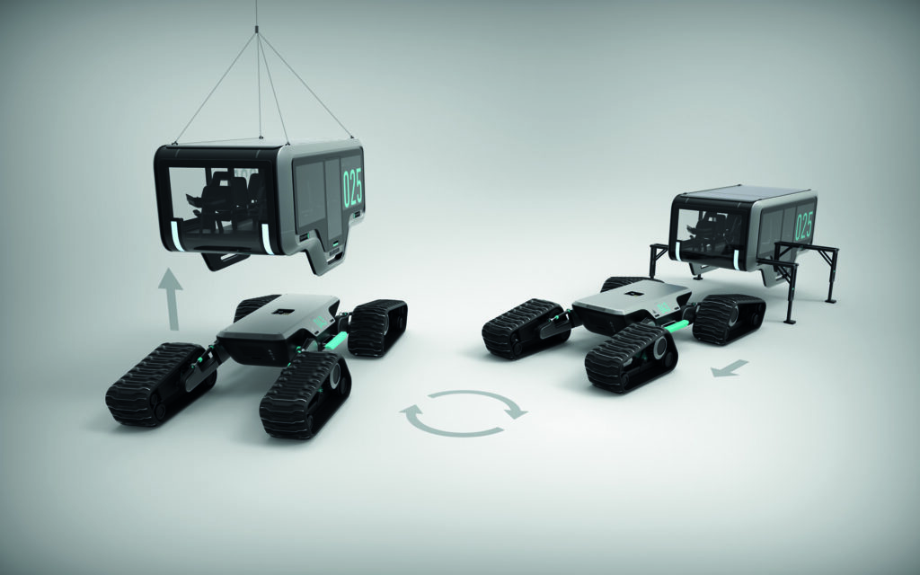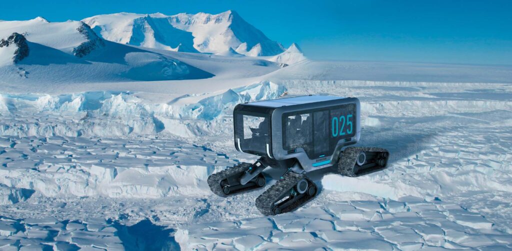 Die modulare Fahrzeugplattform POLARIS ist für Forschungsarbeiten in Dauerfrostzonen, insbesondere zur Entnahme und den Transport von Eisbohrkernen in Polarregionen konzipiert. Die Aufteilung in spezialisierte, teil-autonome Funktionseinheiten mit identischen Antriebsmodulen erlaubt eine flexible Zusammenstellung des Equipments. Das adaptive Kettenfahrwerk realisiert eine sichere Fortbewegung über unwegsames Gelände bei hoher Agilität. Das von Diesel und Solarpaneelen betriebene hybride Antriebskonzept reduziert den Bedarf an Brennstoff.